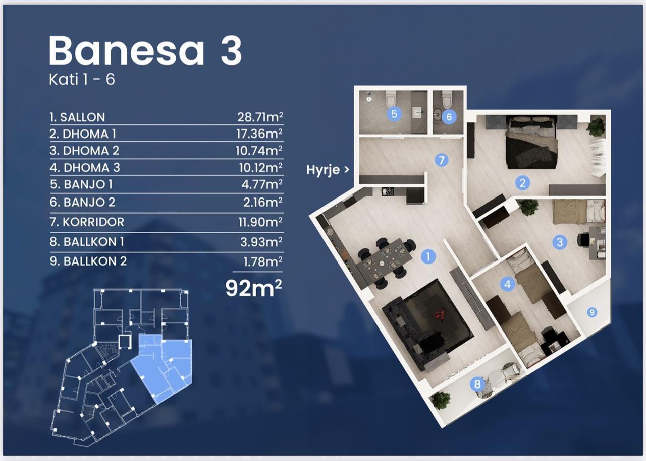 Shitet apartament modern prej 92m² në katin e 3-të të një ndërtese të re, të pozicionuar në qendër të Tetovës. Ndërtim cilësor me çmim 1350€/m². Karakteristikat kryesore: • 3 Dhoma gjumi + 2 Banjo • Sallon i madh me kuzhinë (open space) • 2 Ballkone Pershkrim: • Dritare Alu Plast me 3 shtresa xhami për izolim maksimal • Izolim i klasit të lartë termik dhe akustik • Ashensor Orona (Spanjë) – teknologji moderne dhe i qetë • 2 nivele të parkimit nëntokësor Apartamenti ndodhet në një kompleks të ri banimi, me planimetri të mirëorganizuar dhe ndriçim natyral në të gjitha ambientet. Mos e humbisni këtë mundësi të shkëlqyer për të investuar ose për të jetuar në një nga zonat më të kërkuara të qytetit! ------------------- Се продава модерен стан од 92м² на третиот кат во нова зграда, лоцирана во центарот на Тетово. Квалитетна градба по цена од 1350€/м². Главни карактеристики: • 3 Спални соби + 2 Бањи • Пространа дневна соба со кујна (open space) • 2 Балкони Опис: • Прозорци Alu Plast со трислојно стакло за максимална изолација • Висококвалитетна термичка и звучна изолација • Лифт Orona (Шпанија) – модерна технологија и тивко функционирање • 2 подземни нивоа на паркинг Станот се наоѓа во нов станбен комплекс со одличен распоред и природна светлина во сите простории. Не ја пропуштајте оваа одлична можност за инвестиција или за живеење во една од најбараните локации во градот објавено од Корисник: Deantis International Телефон/и за контакт: